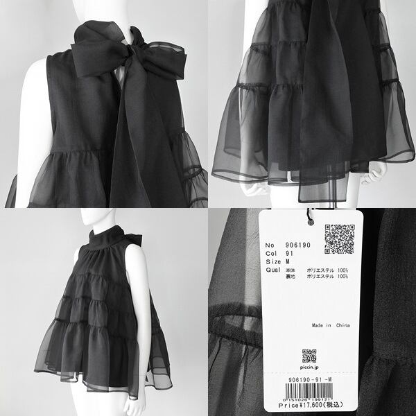 【 PICCIN 】ピッチン きれいめ シアー ジョーゼット ティアード チュニック ブラウス 春夏秋 レディース [906190-BLK]