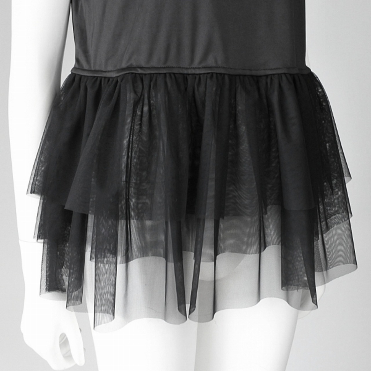 【 PICCIN 】ピッチン 異素材ドッキング 前後着用可能 チュール きれいめ ペプラム タンクトップ カットソー オールシーズン レディース [147880-BLK]
