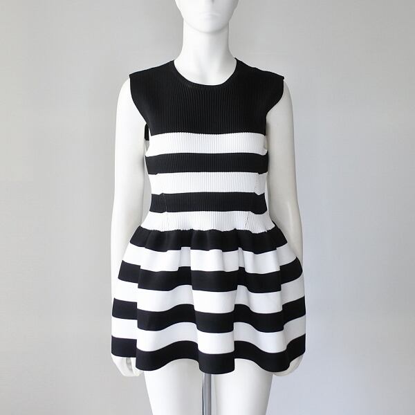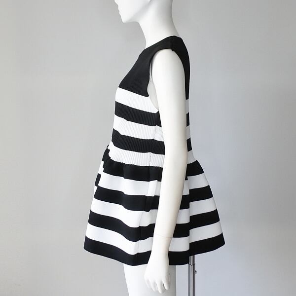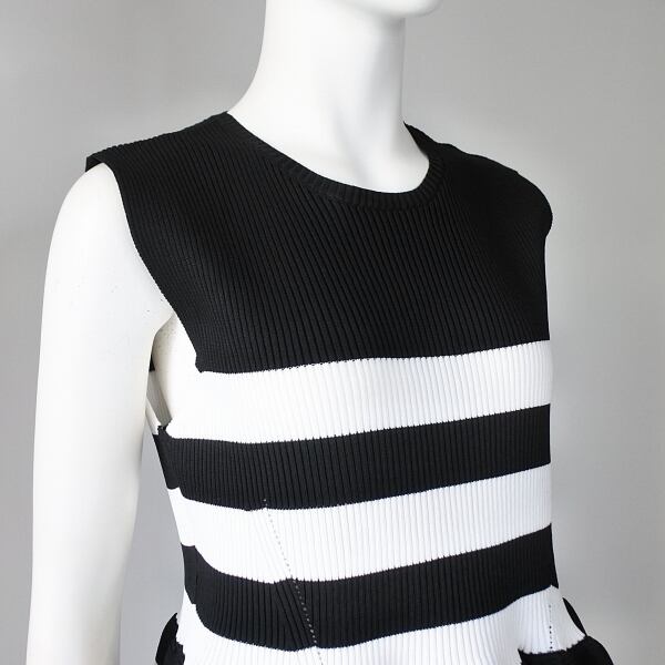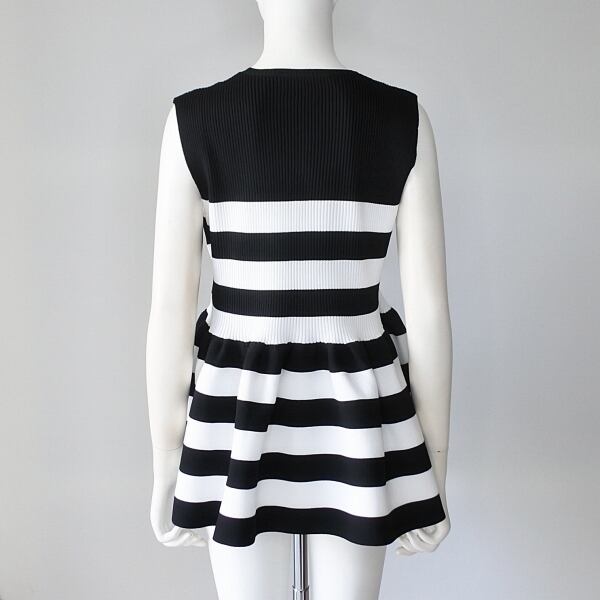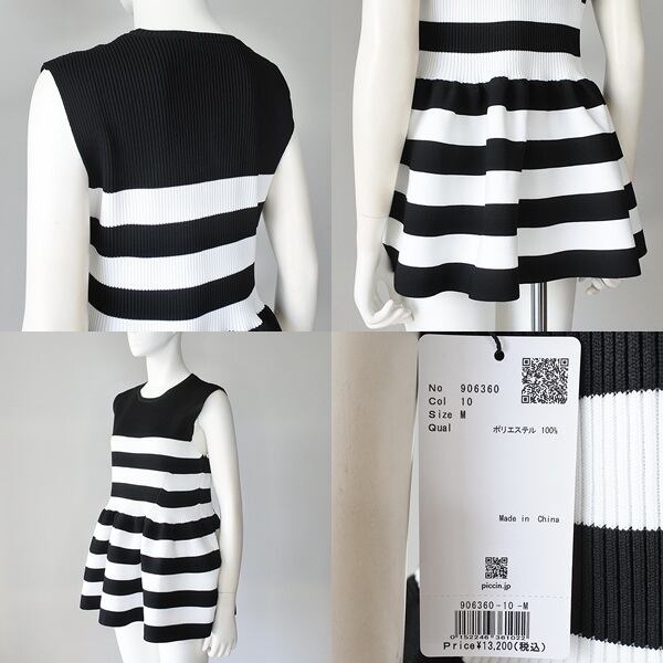【 PICCIN 】ピッチン ペプラム クルーネック リブニット ノースリーブ プルオーバー 春秋 レディース [90360-10-BLKxWHT]