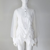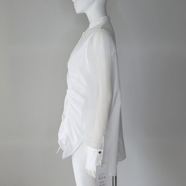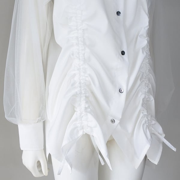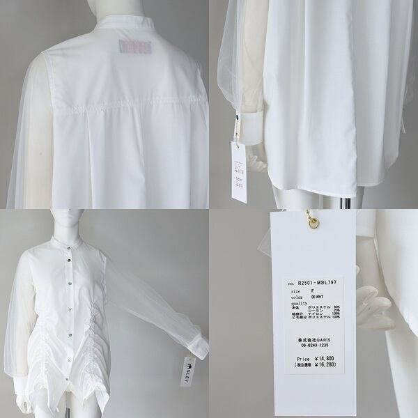 【 RISLEY 】 リズレー リズレイ 異素材ドッキング ギャザー チュール シャツ ブラウス 春夏秋 レディース [R2501-MBL797-WHT]