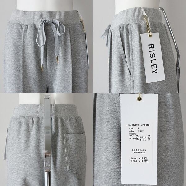 《 セットアップ 対応》【 RISLEY 】 リズレー リズレイ Sweat wide pants スウェット 裏起毛なし ピンタック ワイドパンツ オールシーズン レディース [R2501-SPT816-GRY]