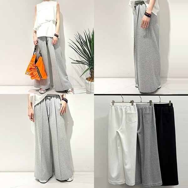 《セットアップ対応》【 RISLEY 】 リズレー リズレイ Sweat wide pants スウェット 裏起毛なし ピンタック ワイドパンツ オールシーズン レディース