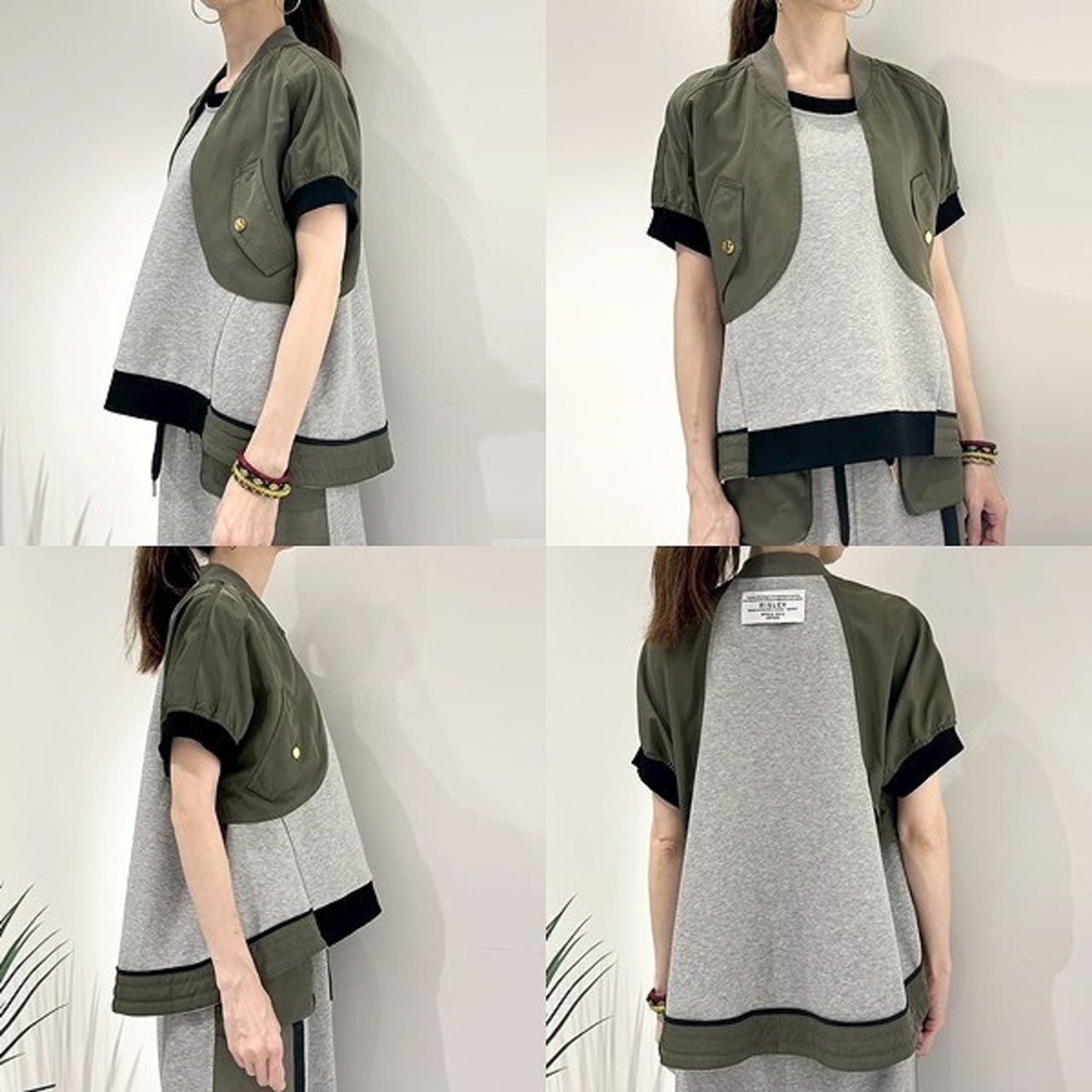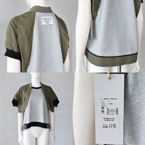 《 セットアップ 対応》【 RISLEY 】 リズレー リズレイ Short bolero pullover 異素材コンビ ボレロ風 スウェット 裏起毛なし Aライン プルオーバー 春夏秋 レディース [R2503-SBT861-GRY]
