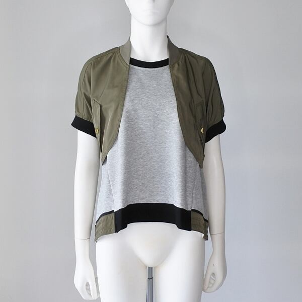 異素材のボレロを重ねたデザインのプルオーバーです。