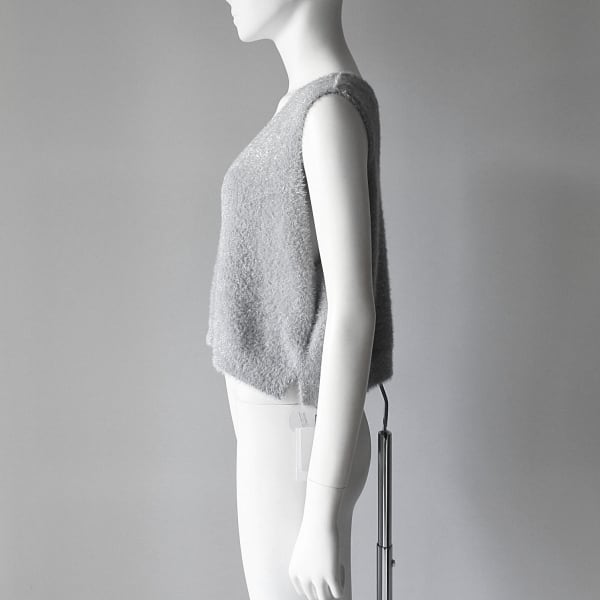 トレンド感のあるラメ糸とシャギーの糸をミックスしたニット/ジレ/ベストです。