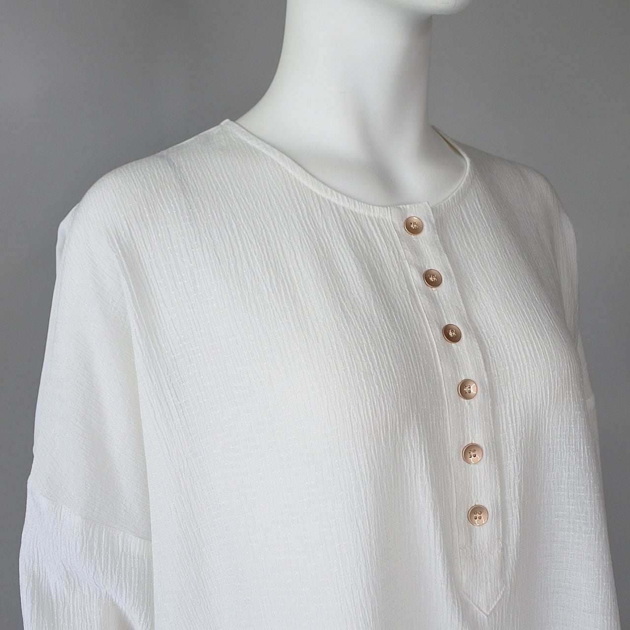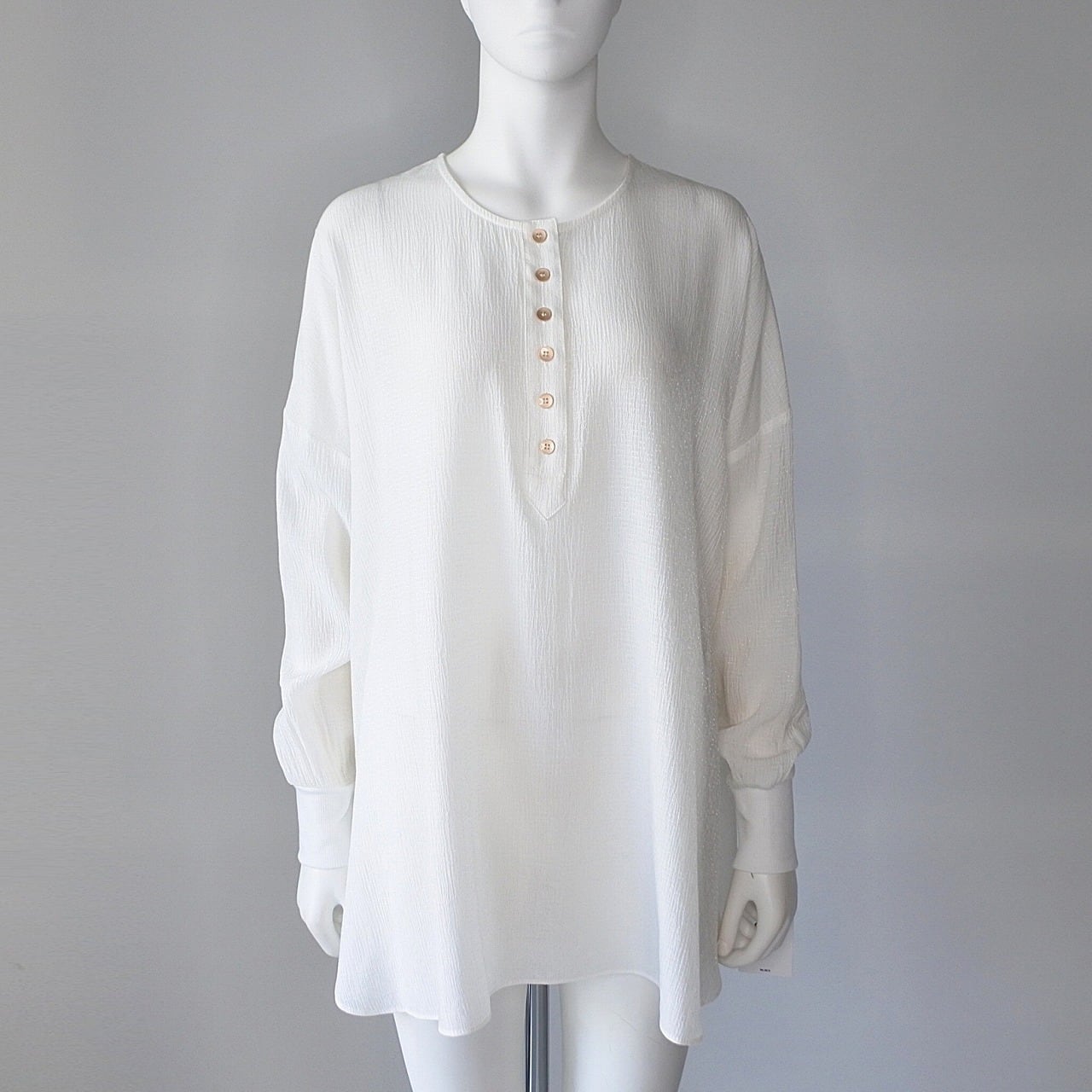 【 CYAN TOKYO 】シアン トーキョー ゆったりシルエット 異素材コンビ ワッシャーラメ 袖リブ ブラウス 春秋冬 レディース [504356-WHT]