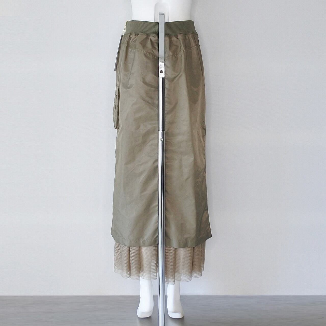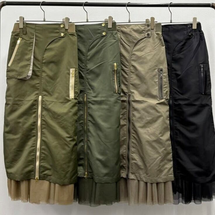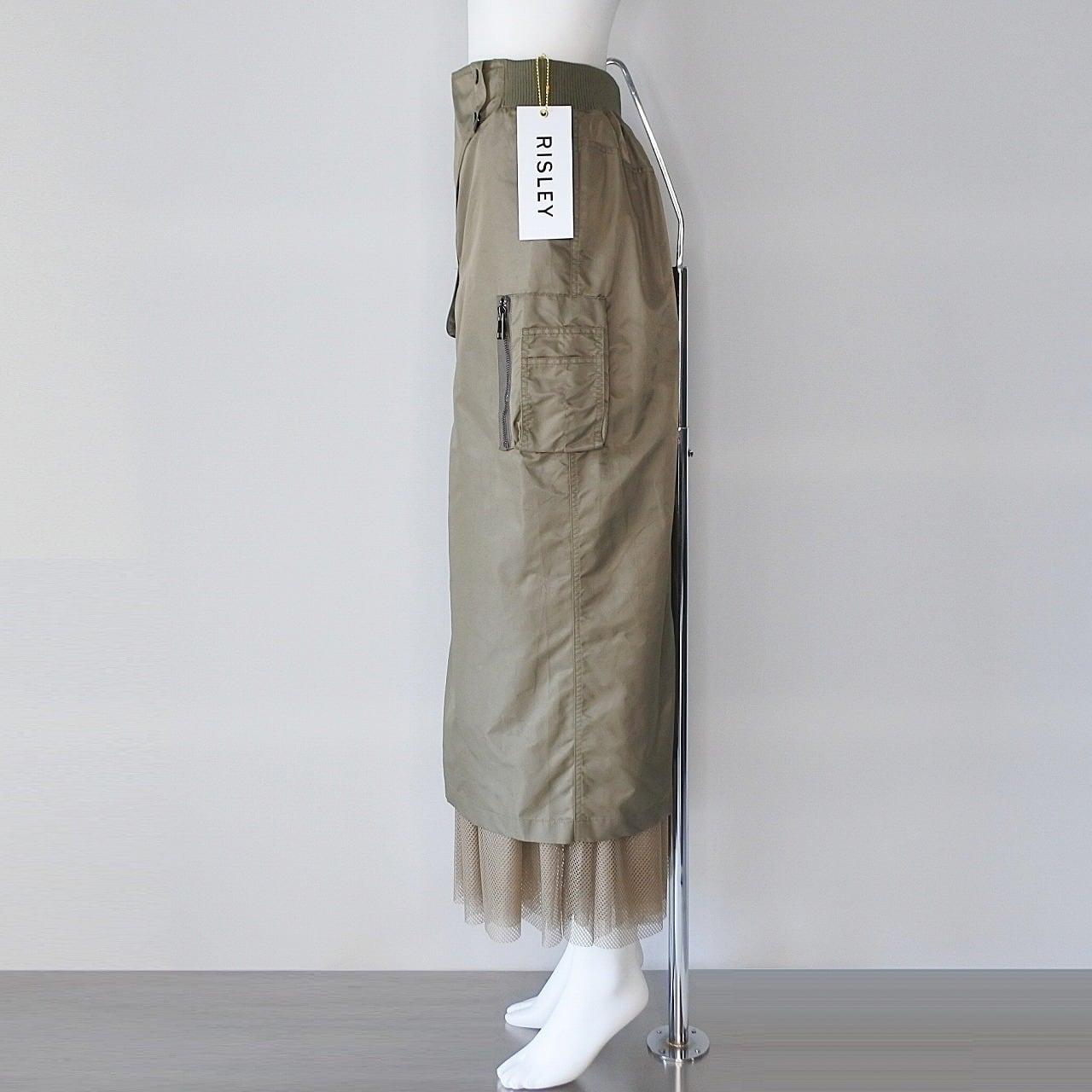 《 セットアップ 対応 》【 RISLEY 】 リズレー リズレイ Military skirt ペチコート付き ジップ ナイロン ストレート スカート 春秋冬 レディース