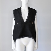 【 CYAN TOKYO 】シアン トーキョー MIXツイード フリンジ バックオーバー ジレ ベスト 春秋冬 レディース