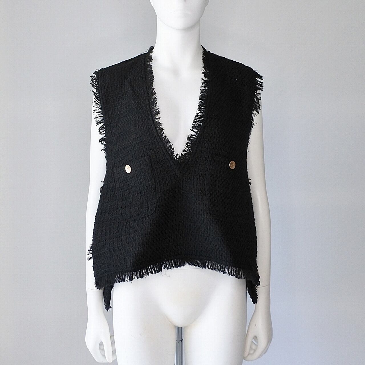 【 CYAN TOKYO 】シアン トーキョー MIXツイード フリンジ バックオーバー ジレ ベスト 春秋冬 レディース [504361-BLK]
