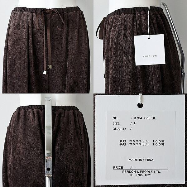 【 CHIGNON 】 シニヨン ベロアメッシュ イージー ワイドパンツ 春夏秋 レディース [3754-053KK-BRW]