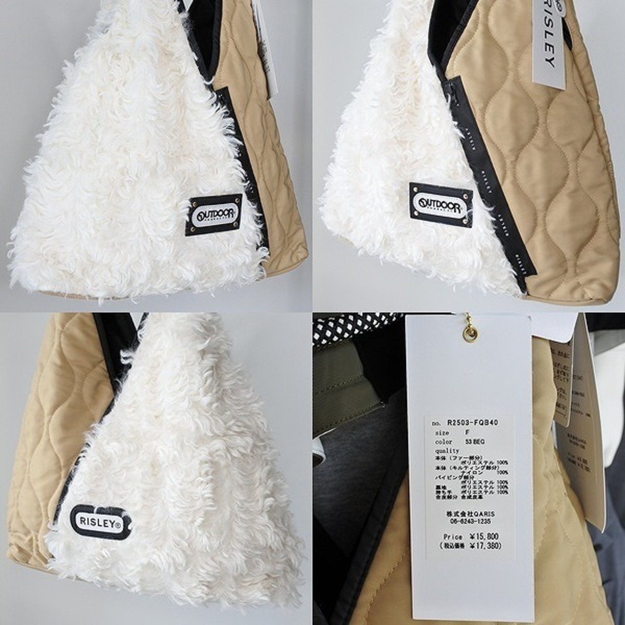 【 RISLEY x OUTDOOR 】 リズレー リズレイ アウトドア コラボ Triangle fur quilt bag エコファー トライアングル バッグ 春秋冬 レディース [R2503-FQB40-53-BGE]