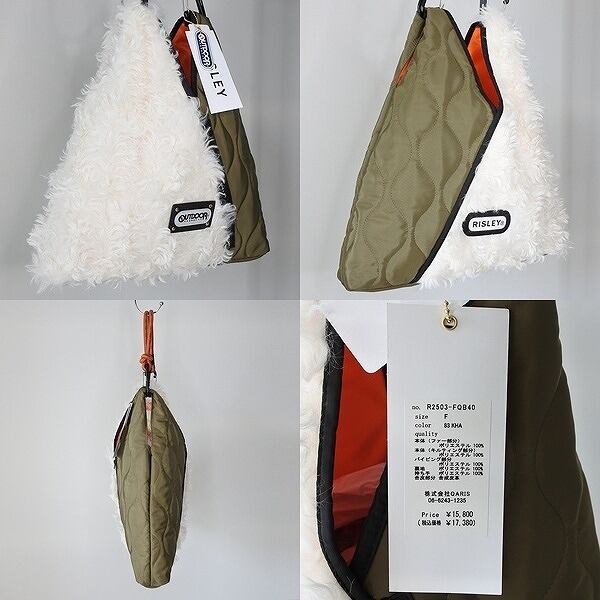 【 RISLEY x OUTDOOR 】 リズレー リズレイ アウトドア コラボ Triangle fur quilt bag エコファー トライアングル バッグ 春秋冬 レディース [R2503-FQB40-83-KHK]