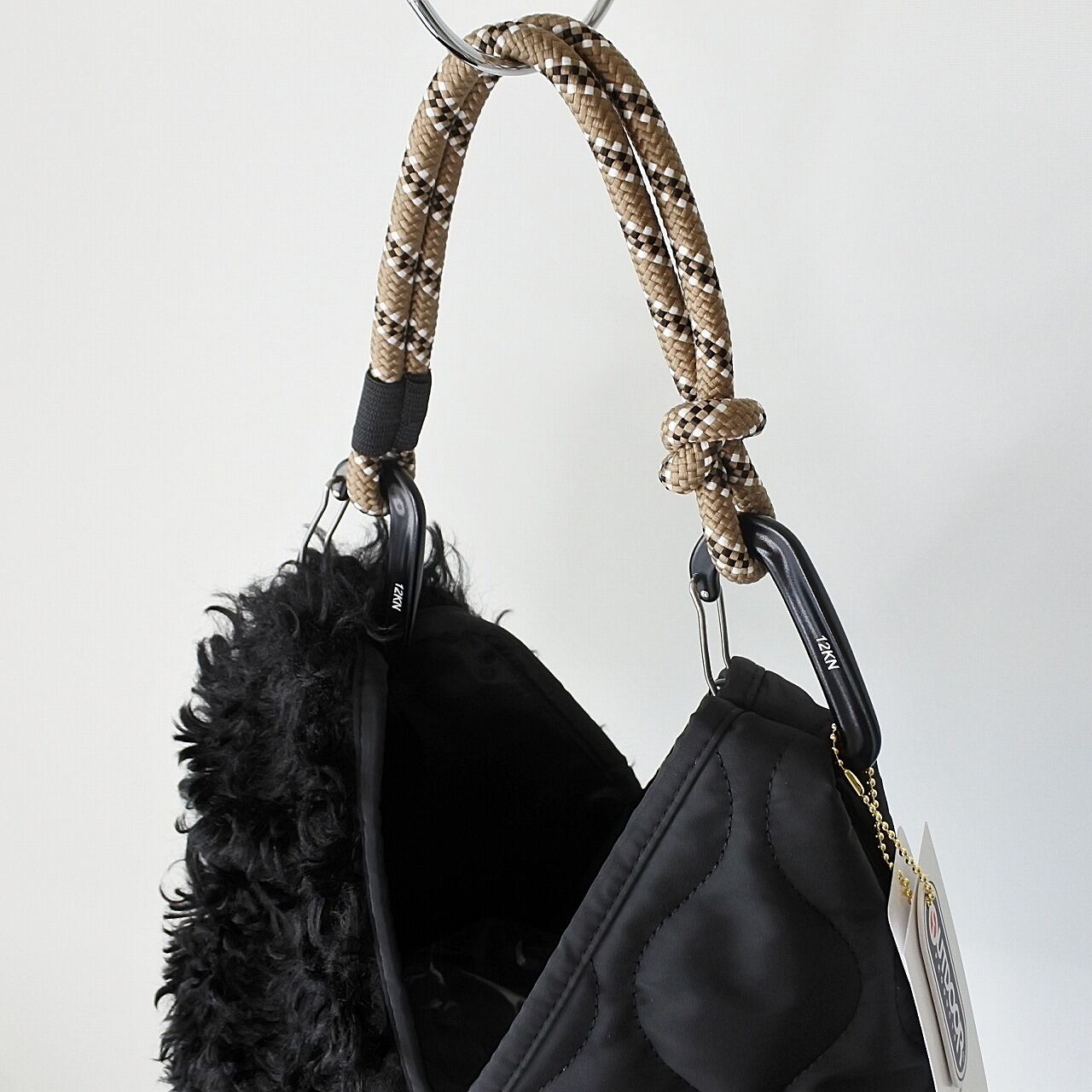 エコファーとキルトの異なる素材を組み合わせることで、バッグに立体感と深みを与えています。