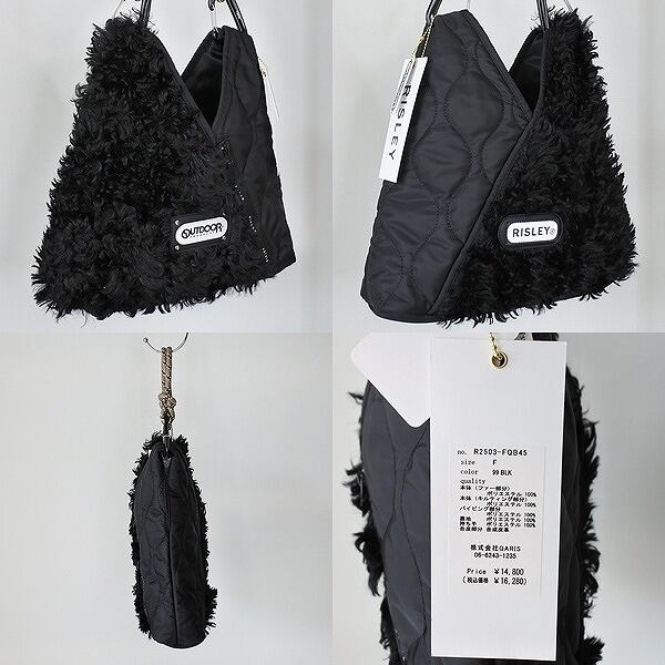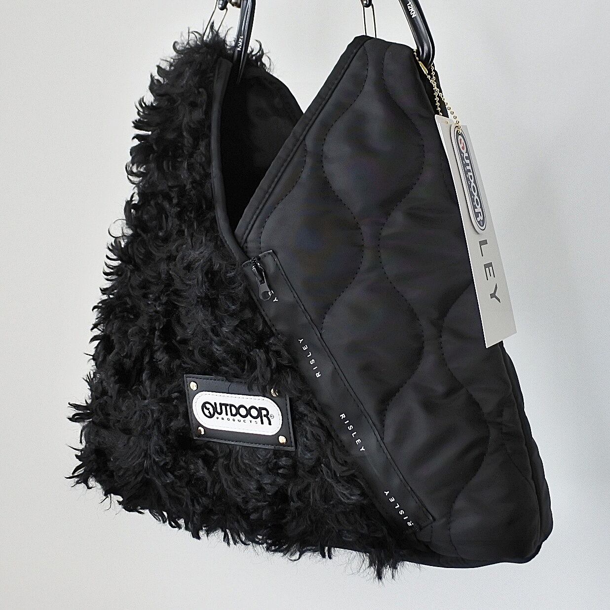 【 RISLEY x OUTDOOR 】 リズレー リズレイ アウトドア コラボ Triangle fur quilt mini bag エコファー トライアングル ミニ バッグ 春秋冬 レディース [R2503-FQB45-99-BLK]