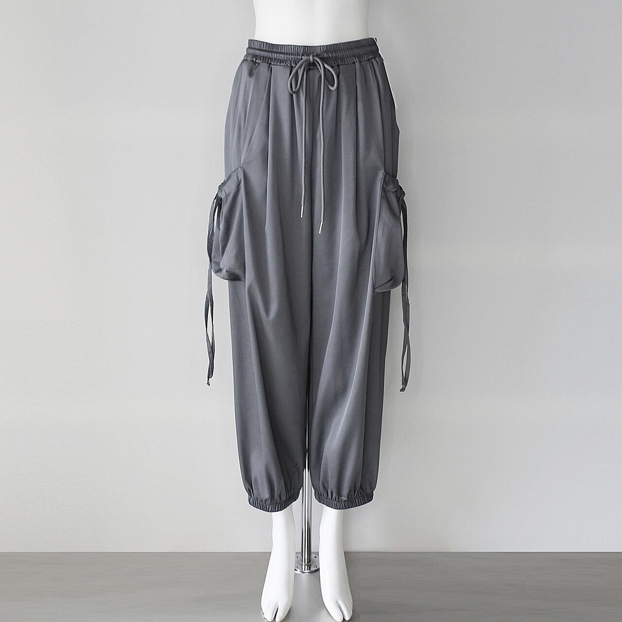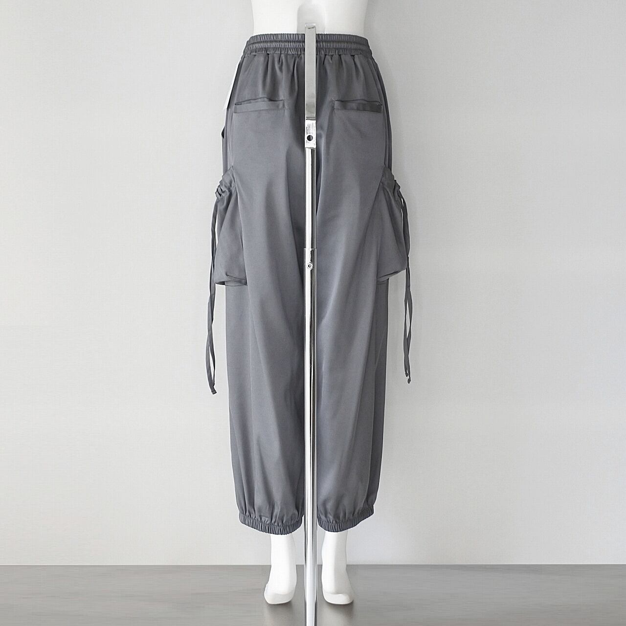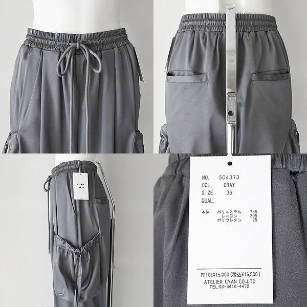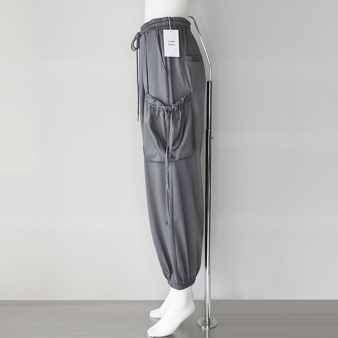 【 CYAN TOKYO 】シアン トーキョー シャーリング ポケット サテン ジョガー パンツ 春秋冬 レディース [504373-GRY]