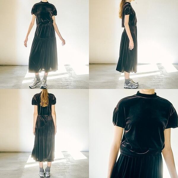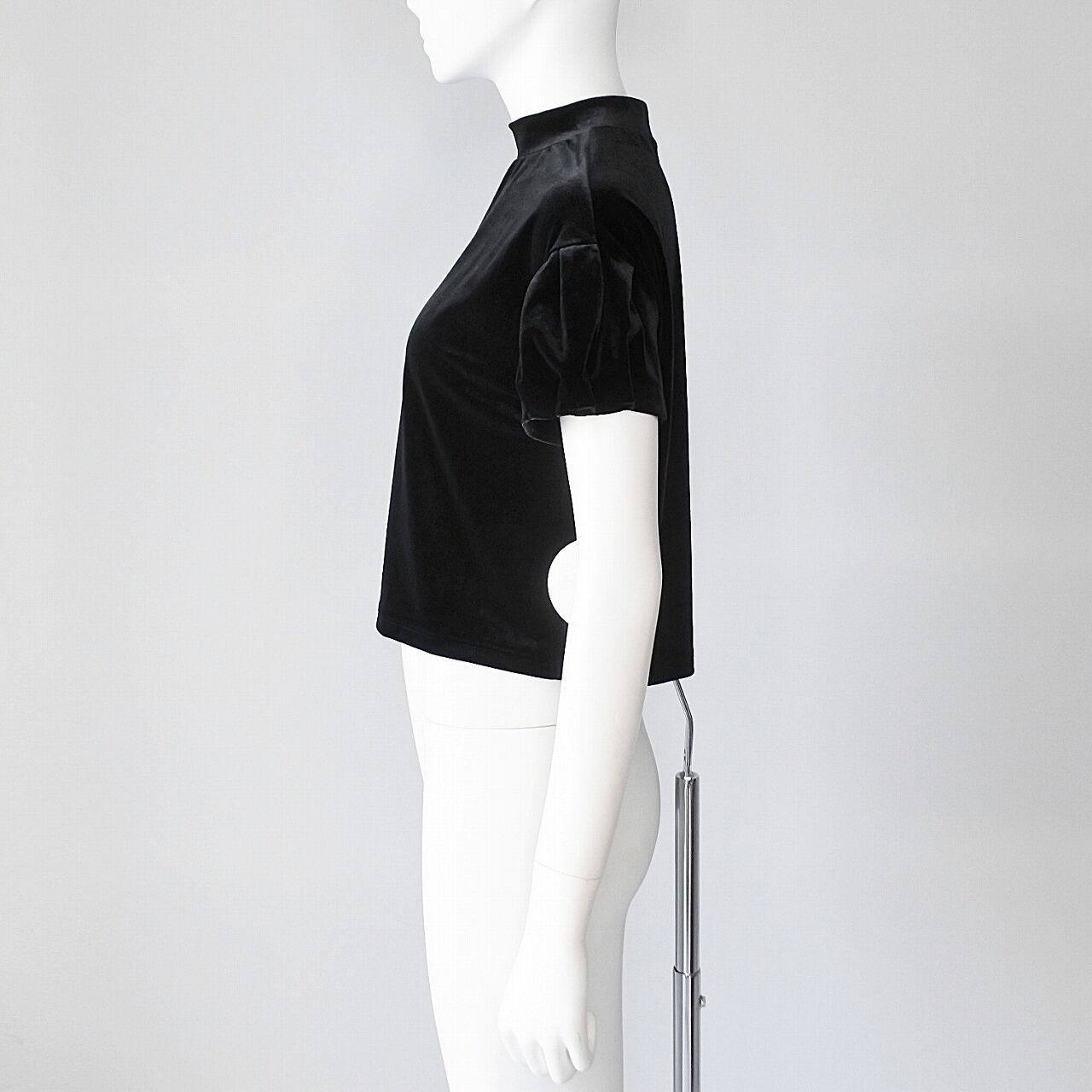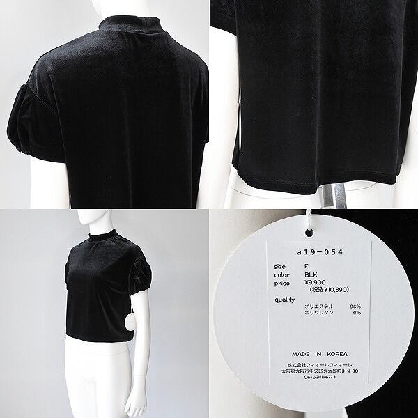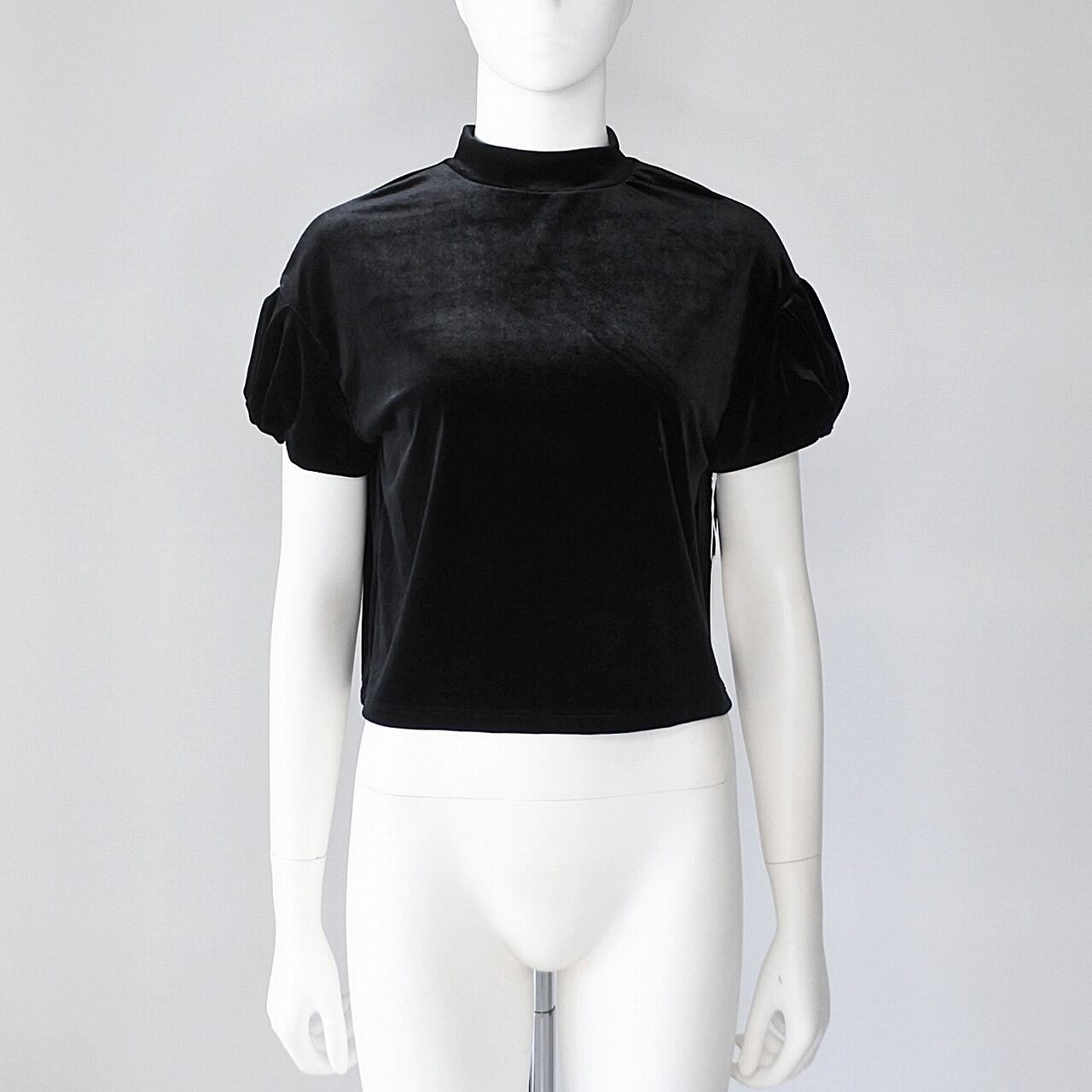 【 anana 】アナナ ベロア モックネック チューリップ袖 ショート丈 半袖 カットソー 春秋冬 レディース [a19-054-BLK]