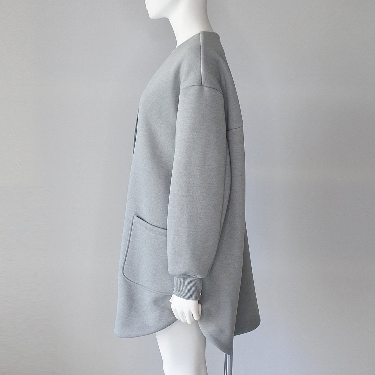ラウンドヘムですっきり見え、腰回りカバーの長め丈になっています。