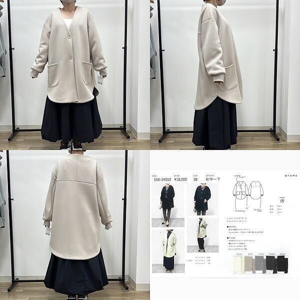 【 QTUME 】クチューム 日本製 ゆったりシルエット ノンモノフィラダンボール ラウンドヘム ミドルコート 春秋冬 レディース