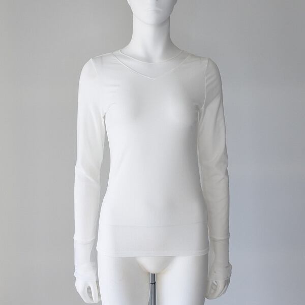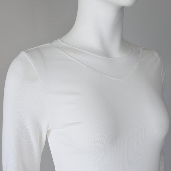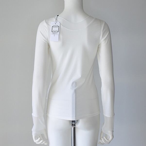【 CYNICAL 】 シニカル 日本製 異素材ドッキング 前後着用 袖 襟シアー リヨセル 長袖 カットソー オールシーズン レディース [550-95522-01-WHT]
