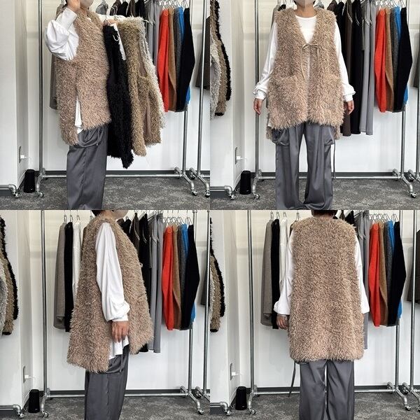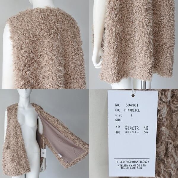 【 CYAN TOKYO 】シアン トーキョー バックオーバー カーリー ファー ベスト ジレ 春秋冬 レディース