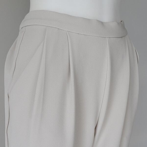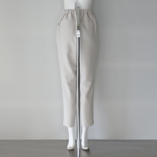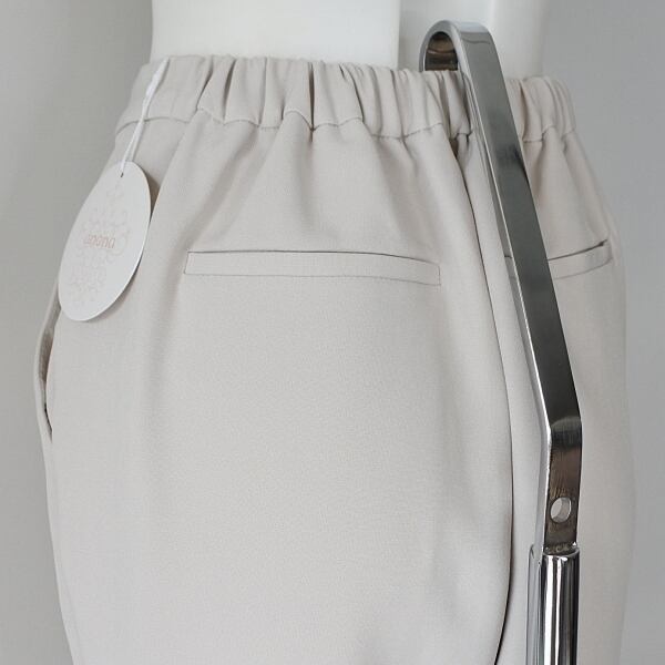 ウエスト後ろゴム仕様、ポリウレタン混のストレッチのきいた素材を使用しノンストレスな履き心地を実現。