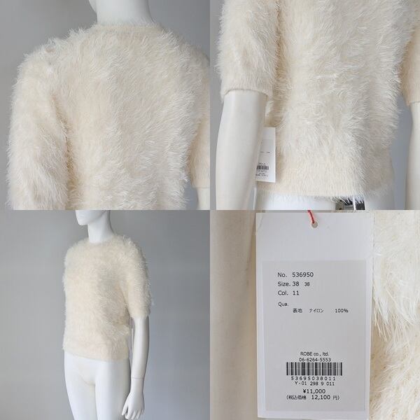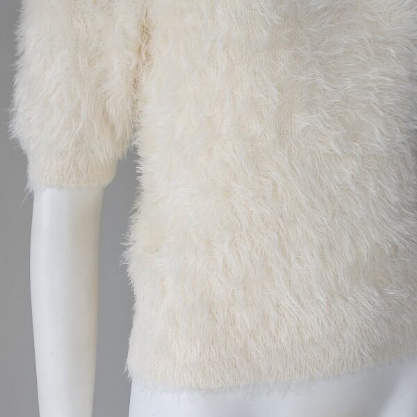 【 PASSIONE 】 パシオーネ シャギー フェザーヤーン ハーフスリーブ 半袖 ニット 春秋冬 レディース [536950-11-IVO]
