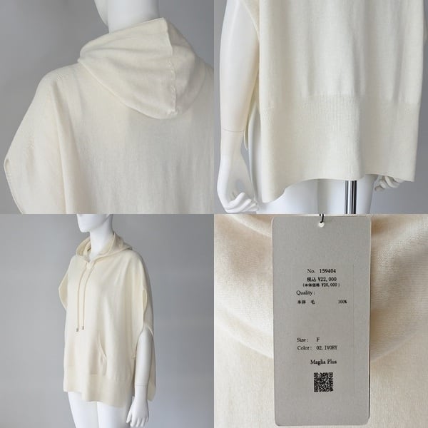 【 Maglia Plus 】マリア プラス ゆったりシルエット ウール 100% ホールガーメント ポンチョ ベスト ジレ 春秋冬 レディース [159404-IVO]
