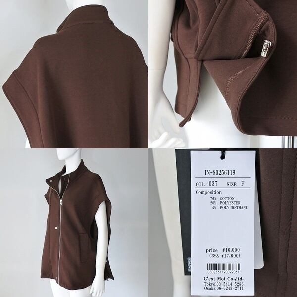 【 Dignite Collier 】 ディニテコリエ スリーブレス ジャージ ジップ ブルゾン ジレ ベスト 春秋冬 レディース [IN-80256119-037-BRW]