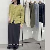 柔らかいフェザーヤーンをポリエステルの糸と接結編みにしたモニットカーディガンです。