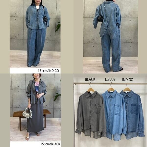 【 ROSIEE 】 ロージー CB釦 テンセル デニム シャツ 春秋冬 レディース [R712704-12-BLK]