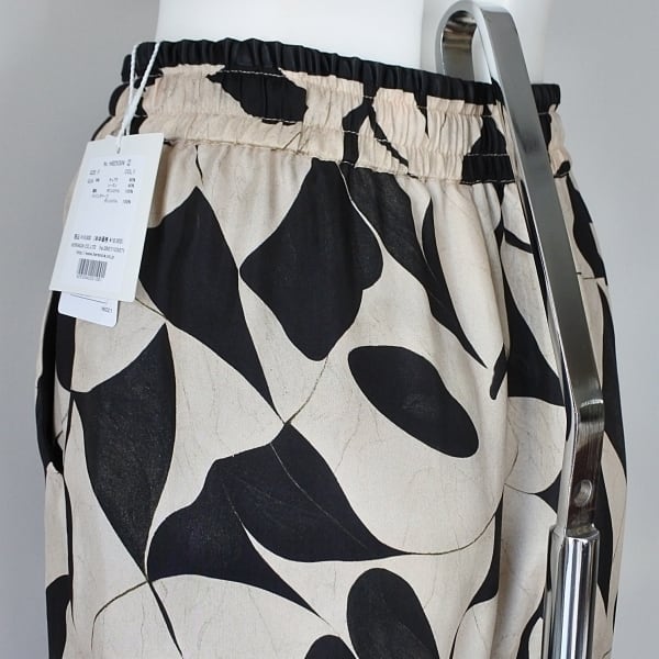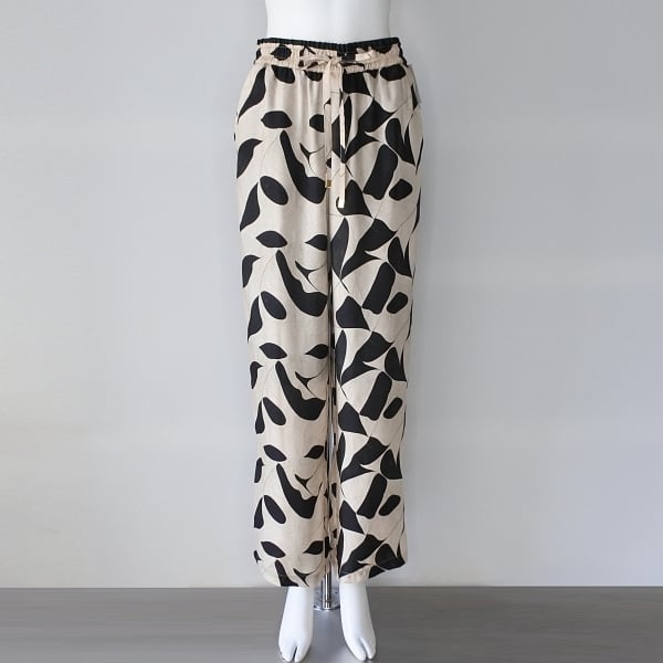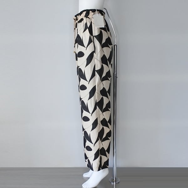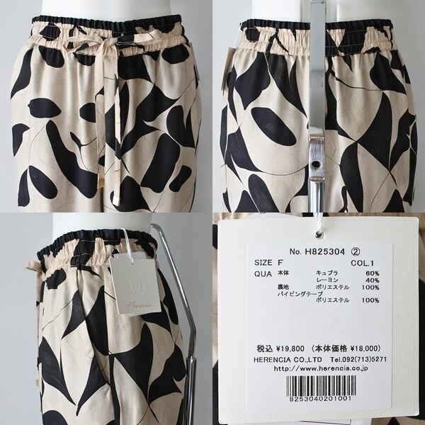 【 HERENCIA 】 ヘレンチア プリント サテン ツイル パンツ オールシーズン レディース [H825304-1-IVOxBLK]