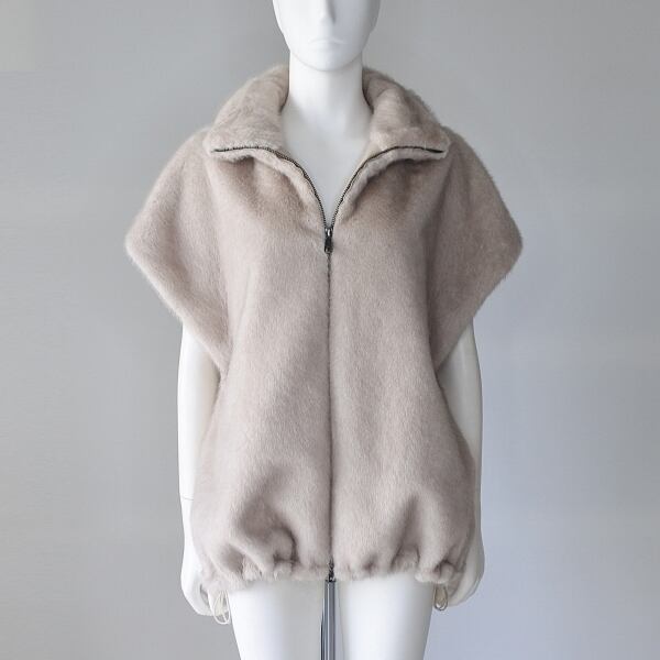 【 CLOCHE 】 クロシェ クロッシェ ゆったりシルエット エコファー ミンク フェイクファー フレンチスリーブ ジレ ベスト 春秋冬 レディース [552-84507-10-IVO]