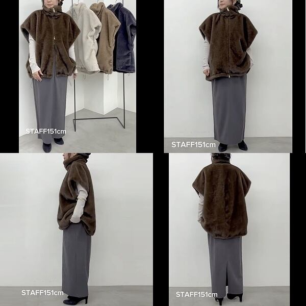 身頃は厚みがあり上質なエコファー素材で肌触りの良いふわふわファーを使用。