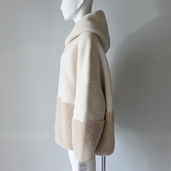 滑らかな手触りのウール混のフェイクボアは程よい毛足でカジュアルながらもスッキリキレイめな印象に。