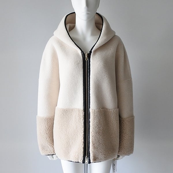 リバーシブル バイカラー パイピング ウール混 フーディ エコムートン フェイクムートン ミディアム丈 コート ジャケット 春秋冬 レディース