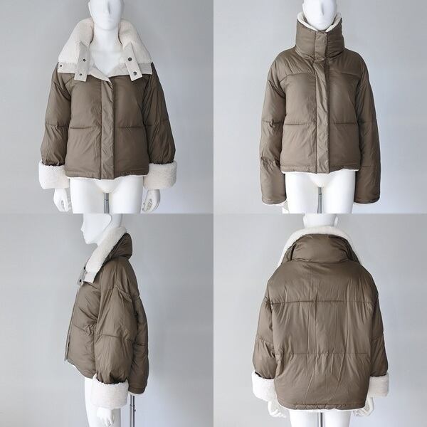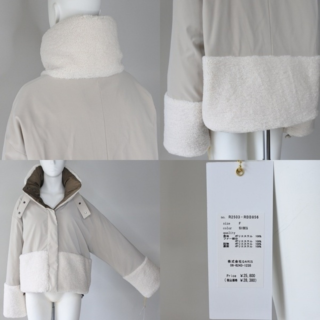 【 RISLEY 】 リズレー リズレイ 異素材コンビ 2way リバーシブル エコダウン エコファー コクーン ジャケット 春秋冬 レディース [R2503-RBB856-53-BGE]