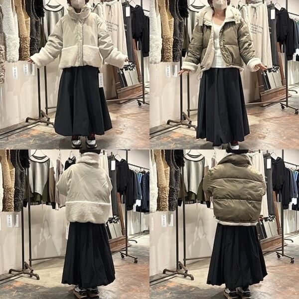 【 RISLEY 】 リズレー リズレイ 異素材コンビ 2way リバーシブル エコダウン エコファー コクーン ジャケット 春秋冬 レディース