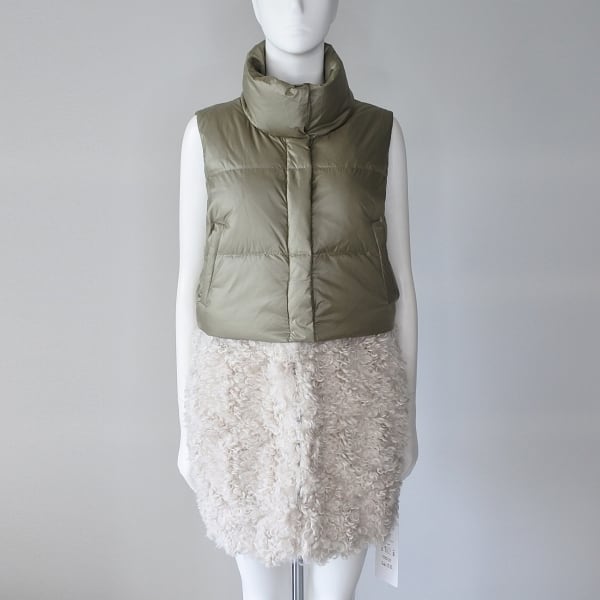 ファーを取り外してカジュアルな短丈のダウンベストにもなります。