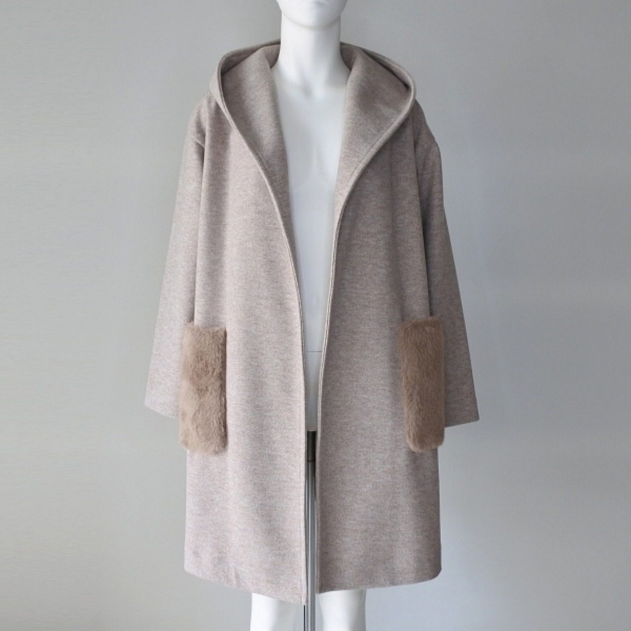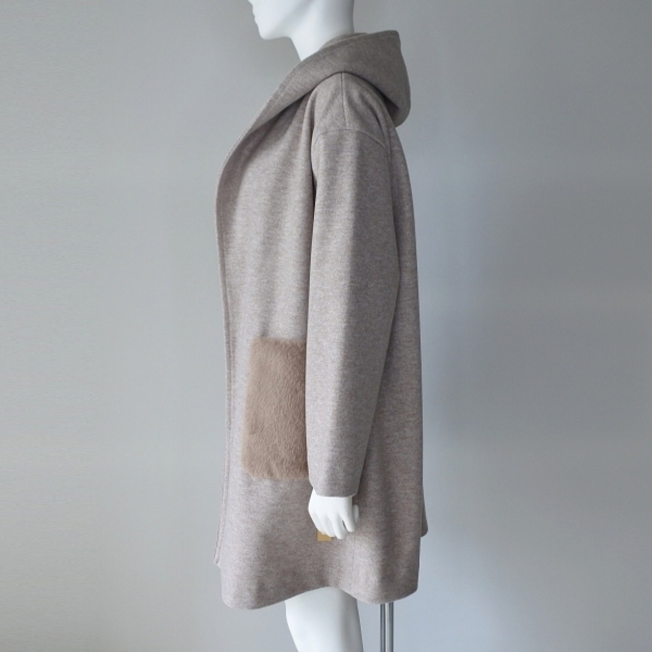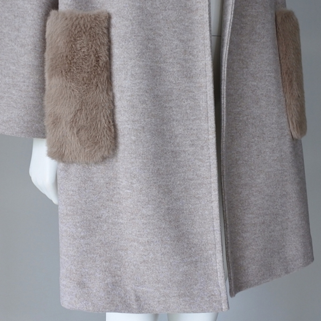 ポケットに付いたエコファーデザインが特徴のガウンコートです。