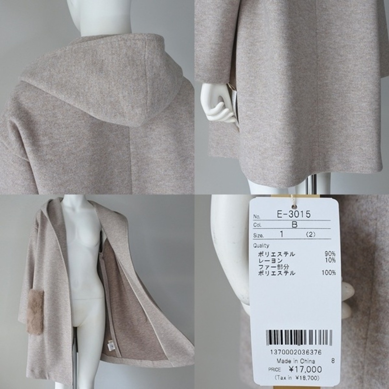 【 Les Ageu 】 レ アージュ エコファー フェイクファー ポケット フーディ 1枚仕立て ミディアム丈 ガウンコート 春秋冬 レディース [E-3015-BGE]
