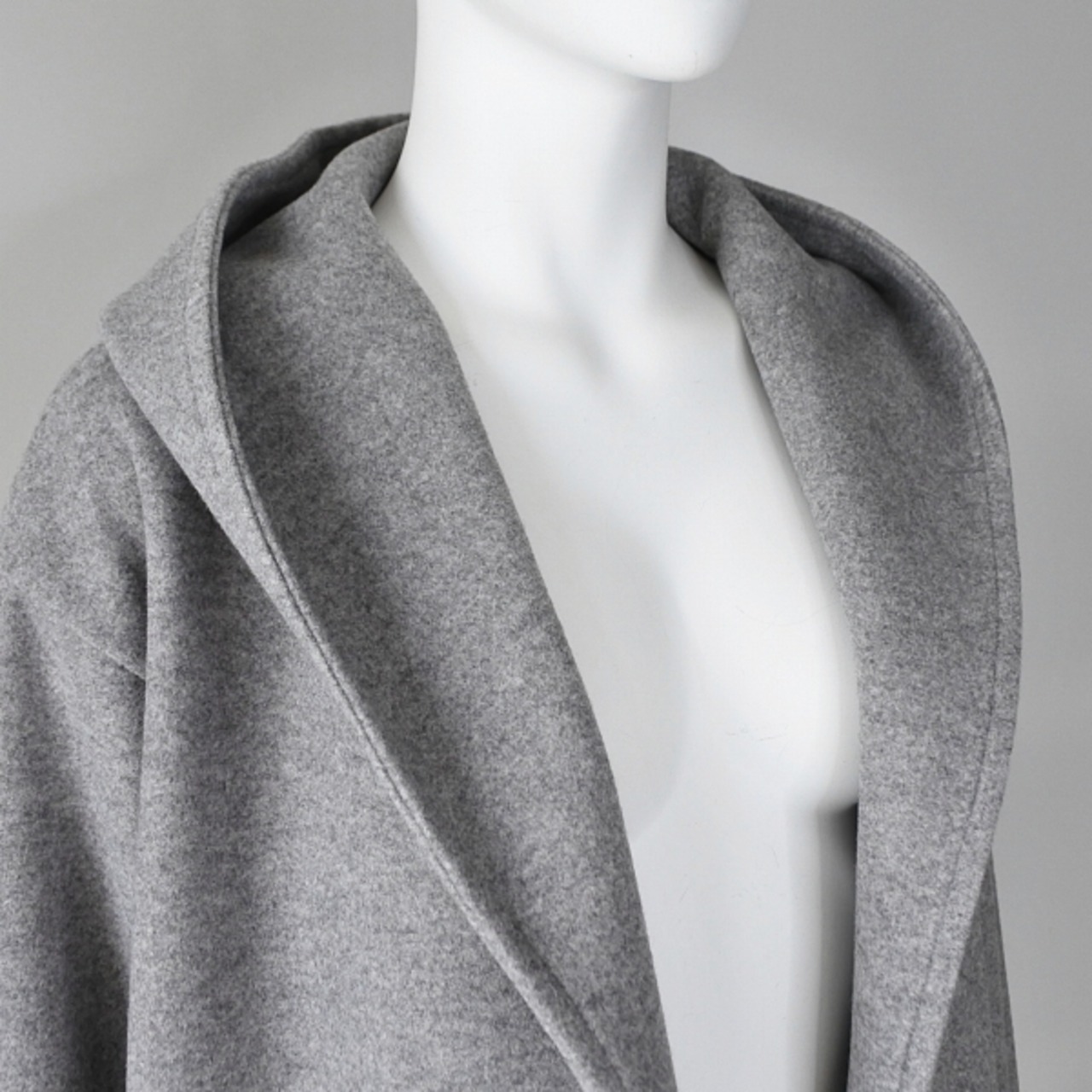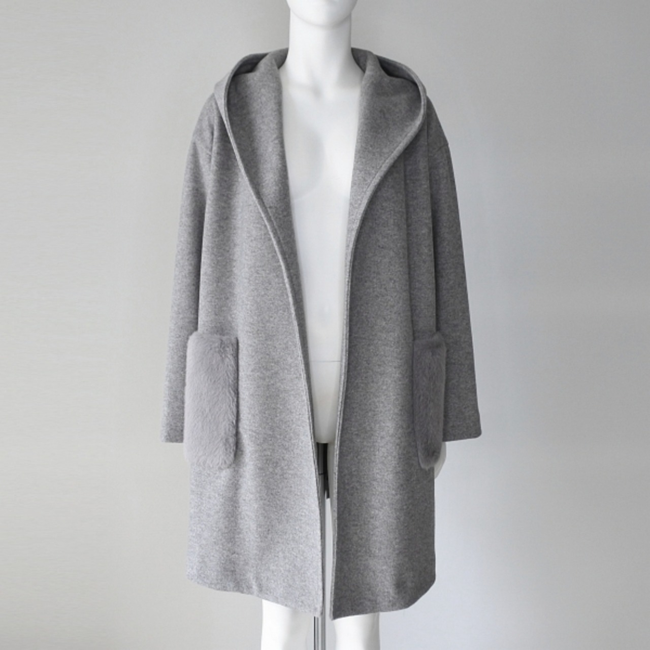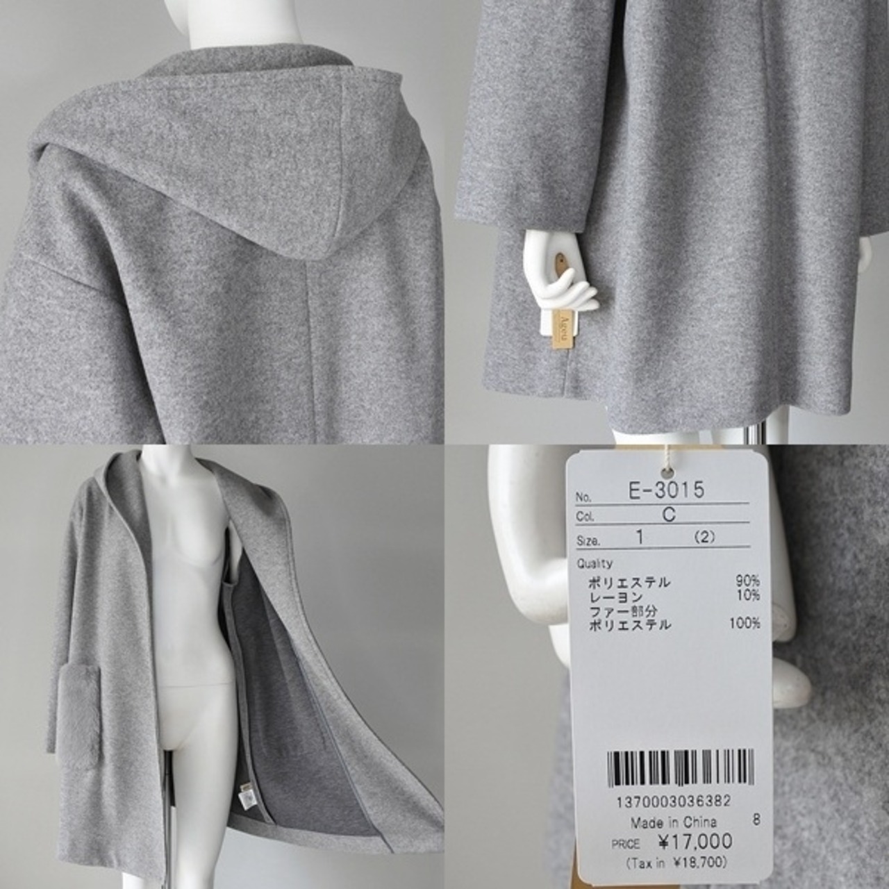 【 Les Ageu 】 レ アージュ エコファー フェイクファー ポケット フーディ 1枚仕立て ミディアム丈 ガウンコート 春秋冬 レディース [E-3015-GRY]