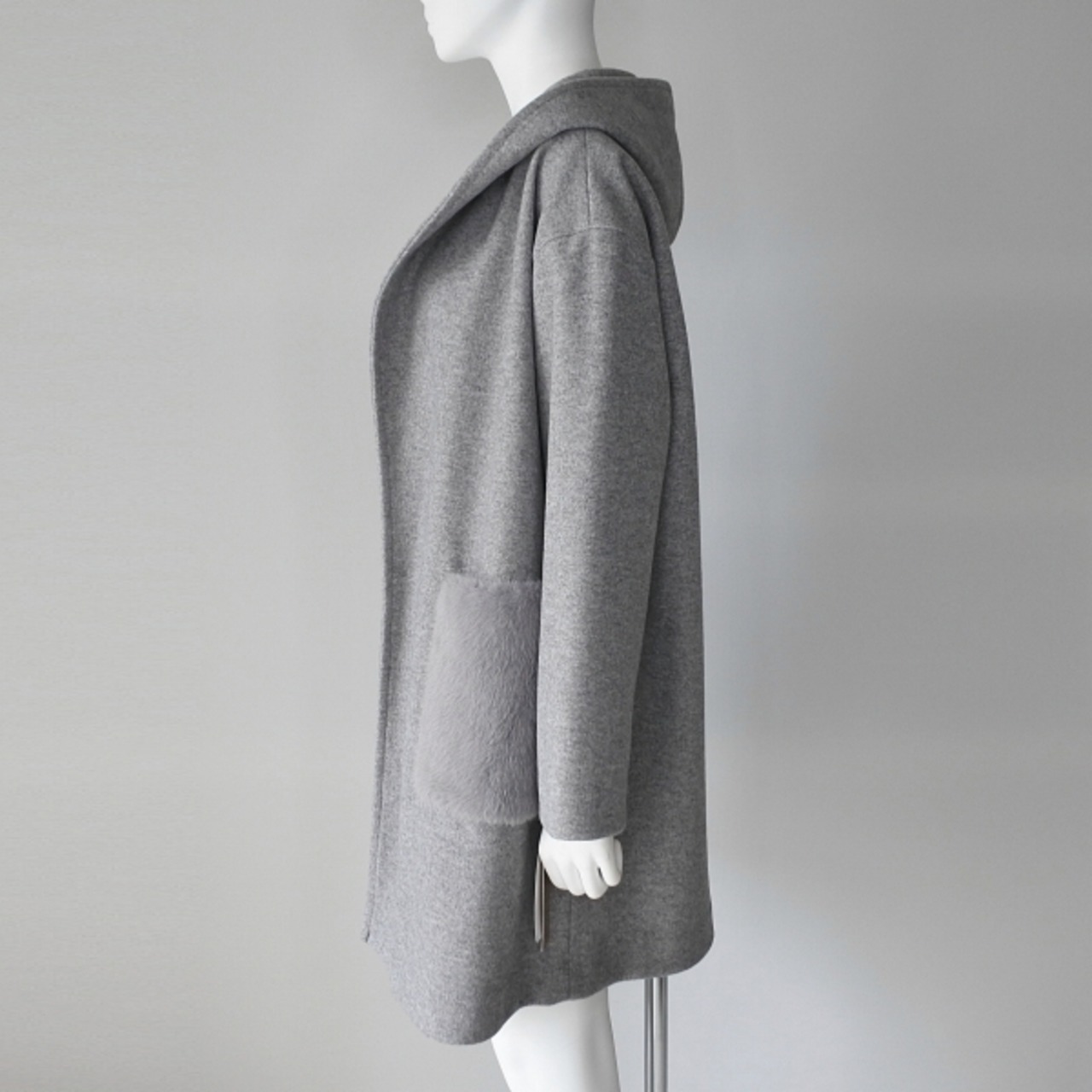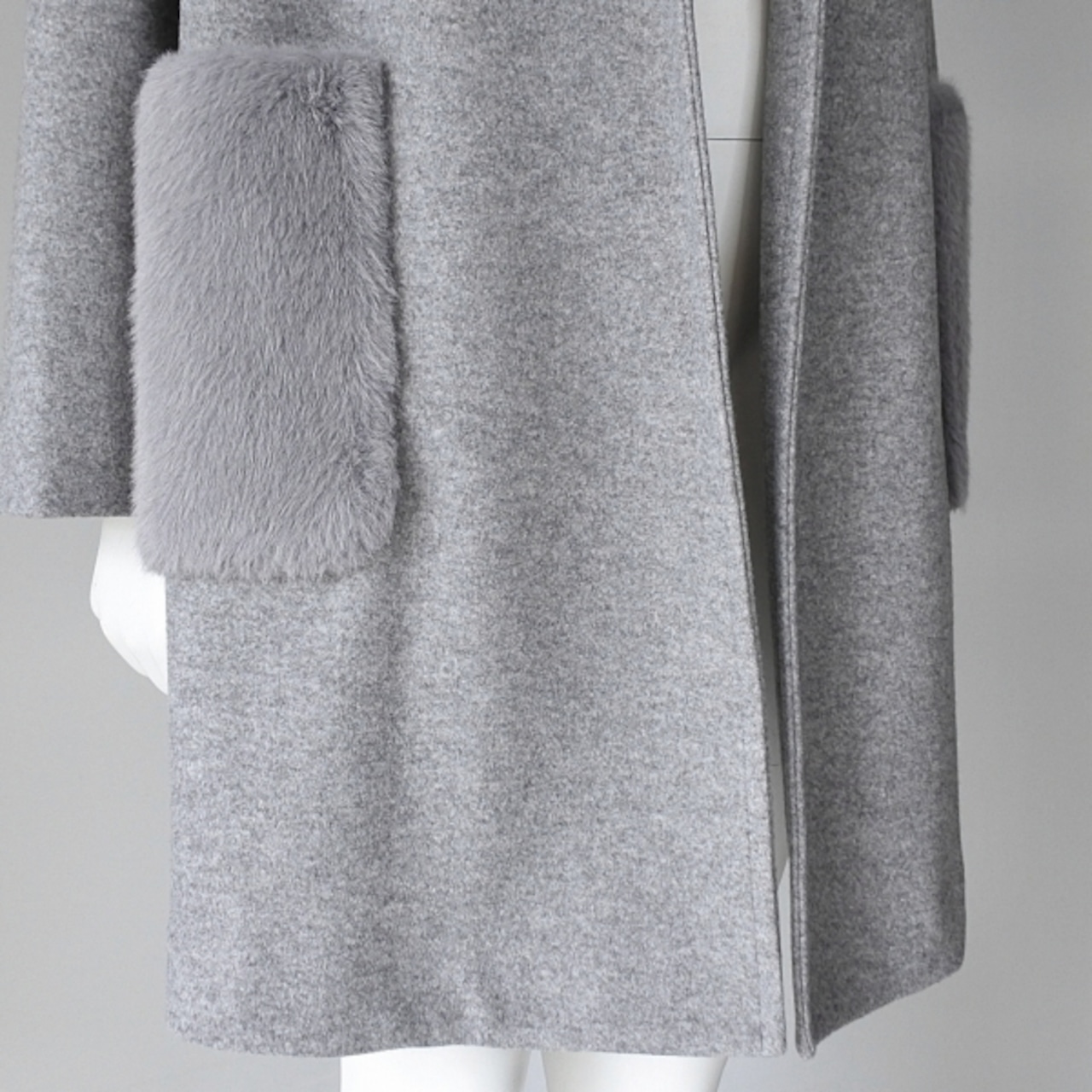 ポケットに付いたエコファーデザインが特徴のガウンコートです。