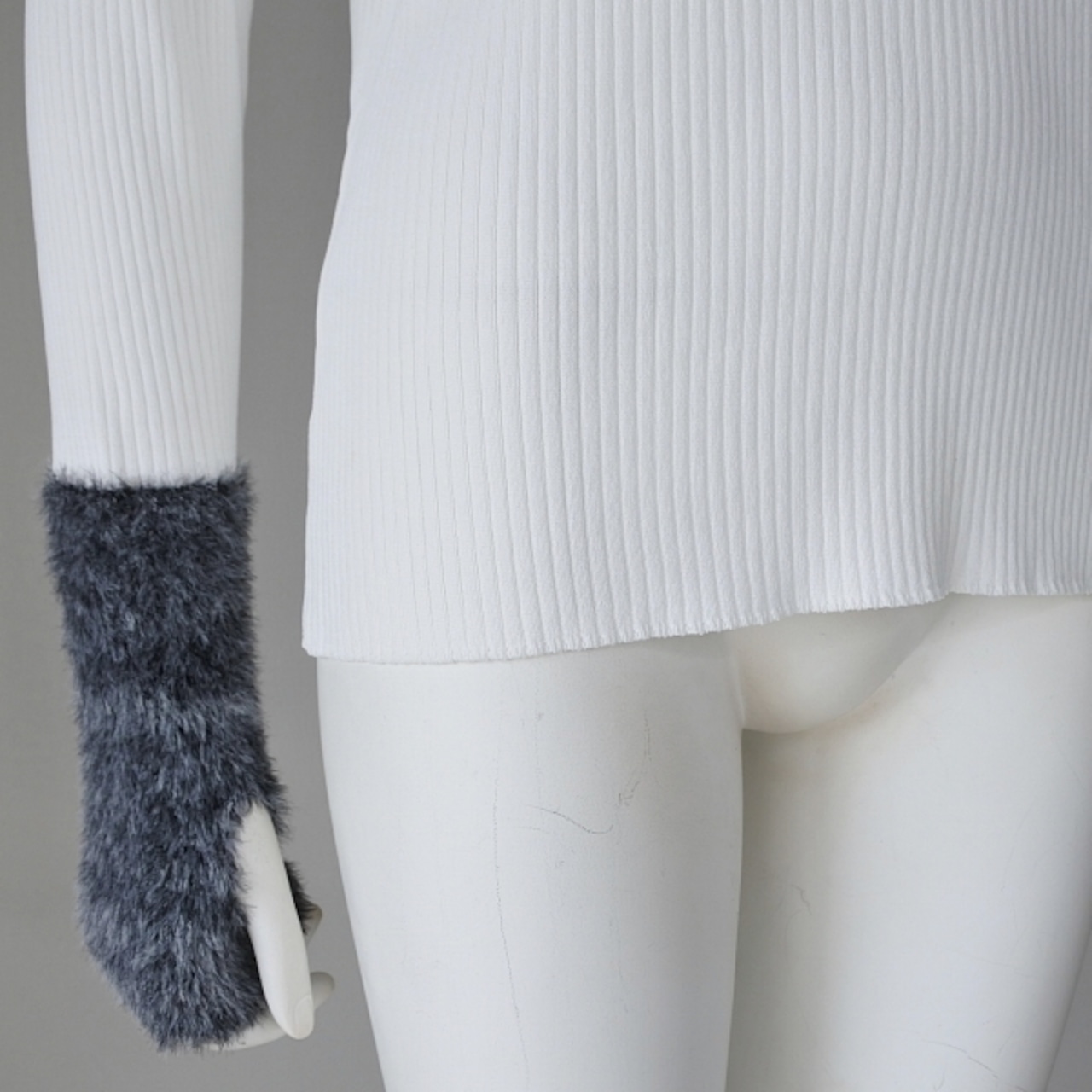 【 ROSIEE 】 ロージー ノンチク 袖ファー サムホール リブ クルーネック ニット 春秋冬 レディース