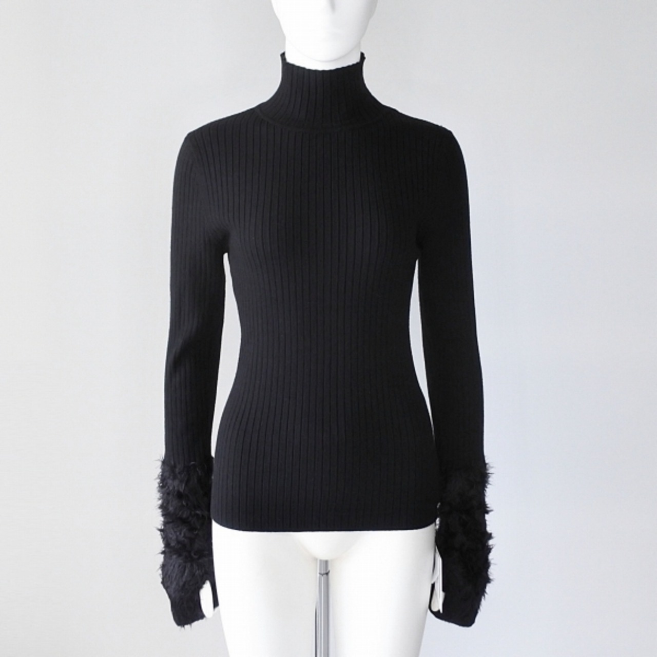 【 QTUME 】クチューム ノンチク 袖ファー サムホール リブ ハイネック ニット 春秋冬 レディース [552-25607-88-BLKxBLK]