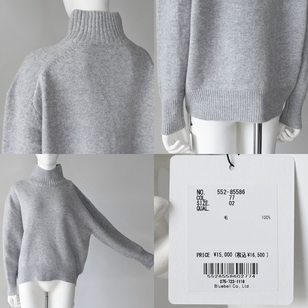 【 CLOCHE 】 クロッシェ クロシェ ウール100% ゆったりシルエット ミドルゲージ コクーン ハイネック プルオーバー ニット 春秋冬 レディース [552-85586-77-GRY]