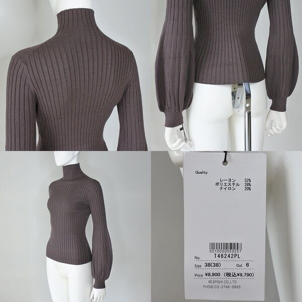 【 TOLNERA 】 トルネラ ノンチク もちもち ハイネック ボリューム袖 リブ ニット 春秋冬 レディース