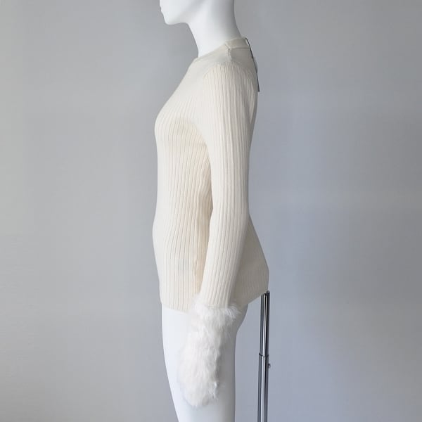 【 QTUME 】クチューム ノンチク 袖ファー サムホール リブ クルーネック ニット 春秋冬 レディース [552-25610-01-IVOxIVO]