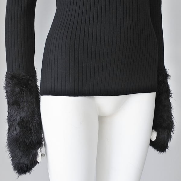 【 QTUME 】クチューム ノンチク 袖ファー サムホール リブ クルーネック ニット 春秋冬 レディース [552-25610-88-BLKxBLK]