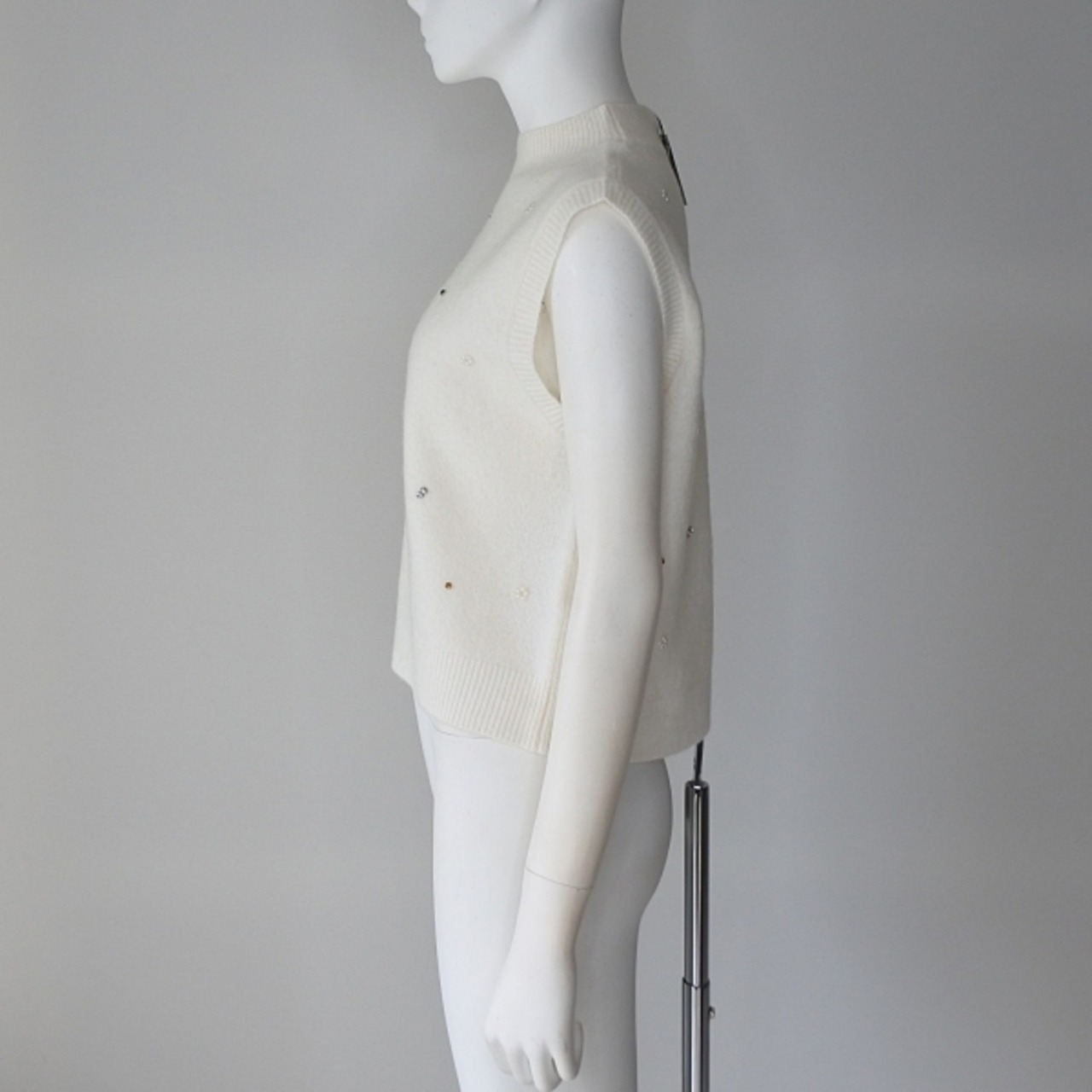 【 Maglia Plus 】マリアプラス 前後ランダムビジュー エアリーウール ハイネック ベスト ジレ 春秋冬 レディース