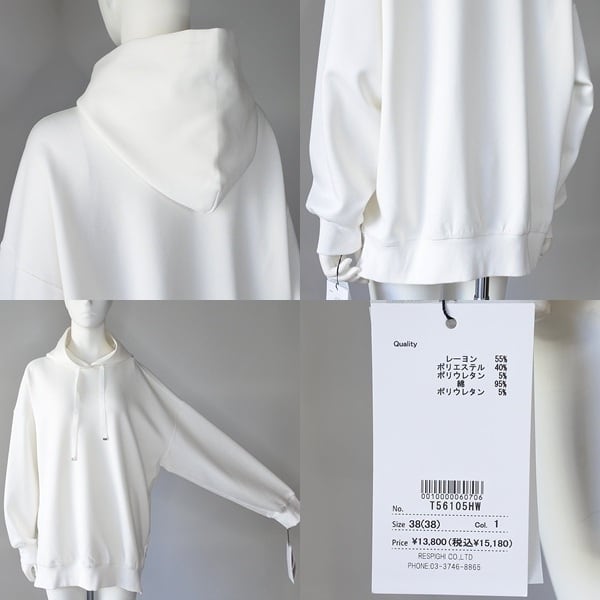 【 TOLNERA 】 トルネラ きれいめ ダンボール サイドZIP プルオーバー パーカー 春秋冬 レディース [T56105HW-WHT]